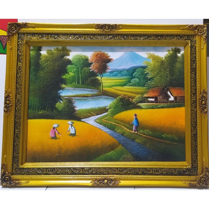 Lukisan Pemandangan Kampung Sawah Padi / Lukisan Pemandangan Panen Padi Sawah Elevenia